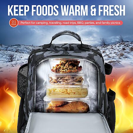 - Built-in Cooler: Insulated compartment keeps drinks and food cool; add ice packs for enhanced cooling.