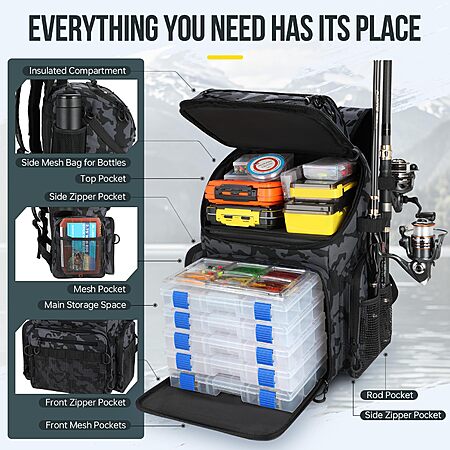 ZBO US via amazon.com has PLUSINNO Cooler Fishing Backpack with Rod Holders 45L Large Water-resistant Fishing Tackle bag Store Fishing Gear Fishing Gifts for Men Father, Sport Bags on sale for $38. Save 5% at checkout. Shipping is Free.