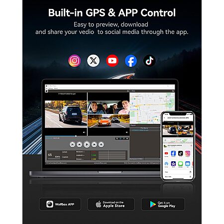 WOLFBOX i17 4K 3 Channel Dash Cam, with 64GB Card, 4K+1080P+1080P $78.99
