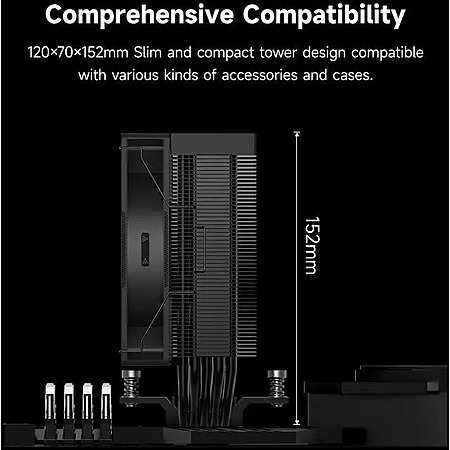 Zero RAM interference with a slim, single-tower design and triangle fin stack, making it suitable for compact builds and tall memory modules.