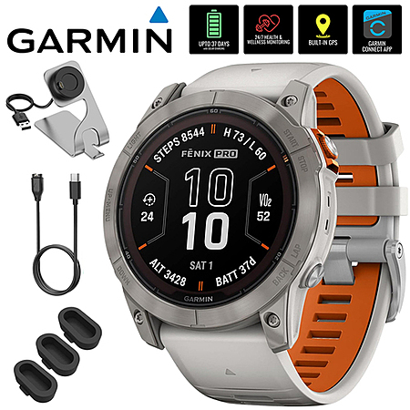 51mm Garmin fenix 7X Pro Solar Sapphire Sports Watch (Titanium, Gray/Orange) $499 + Free S/H