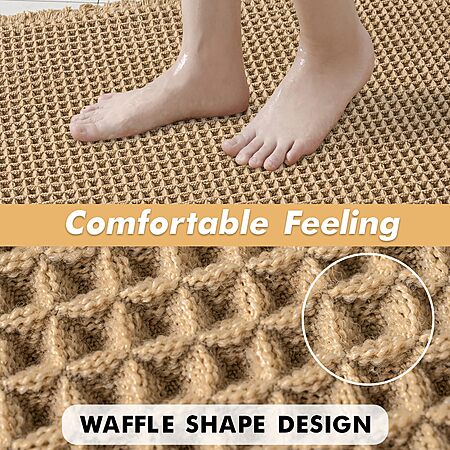 ULTRA WATER ABSORBENT:Double layer of deep waffle texture absorbs water instantly and more breathable. These super absorbent bath mats can soak up the water from your feet and keep your floor dry like a giant sponge, when you step out of the shower or bathtub, and protect your feet from the cold floor.