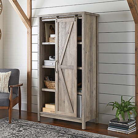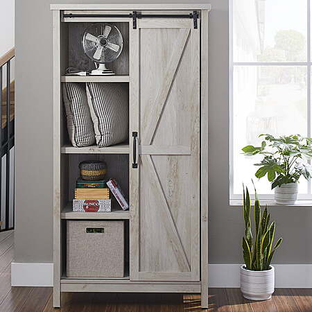 Walmart [walmart.com] has 66" Better Homes & Gardens Modern Farmhouse Bookcase Storage Cabinet (Rustic White Finish) for $51.80. Shipping is free.