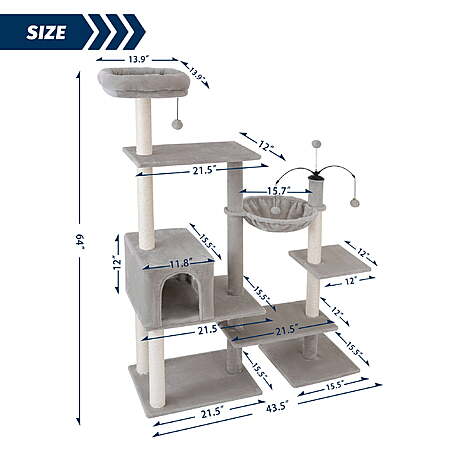 64" Vibrant Life Multi-Level Cat Tree w/ Condo & Hammock (Light Gray) $20.84 + Free S&H w/ Walmart+ or on $35+