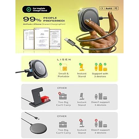 $12.99* | Lisen 2-in-1 Travel Apple Magsafe Charger at Amazon
