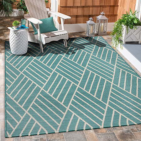 Walmart [walmart.com] has 5' x 7' Better Homes & Gardens Turquoise Diamond Outdoor Rug for $11.40. Shipping is free w/ Walmart+ (free trial available [walmart.com]) or on orders $35+.