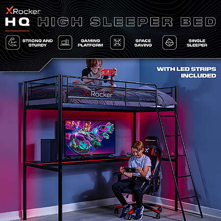 X Rocker HQ Gaming Bunk Bed w/ LED & Built-in Shelving (Twin, Black) $50 + Free Shipping