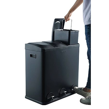 16-Gal Step N' Sort 3-Compartment Stainless Steel Kitchen Trash & Recycling Bin (Black or Silver) $30 + Free Shipping