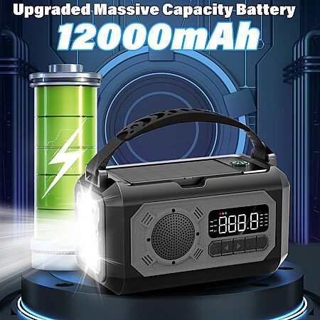 12000mAh Emergency Weather Radio, Hand Crank Solar Radio Portable AM/FM/NOAA Radio with 2 Solar Panels 3 Charging Methods SOS Alarm $15.29 +FS w/Prime