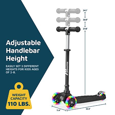 Lifemaster Kids Scooter – Children and Toddler 3 Wheel Kick Scooter – LED Wheel Lights Illuminate When Rolling– Adjustable Handlebar – Indoor and Outdoor Black $25.44