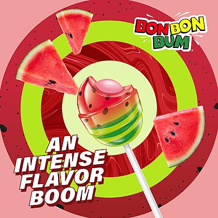 2 Pack Colombina Bon Bon Bum Lollipops w/Bubble Gum Center, Watermelon Flavor (24 Count) $7.98 +FS w/Prime