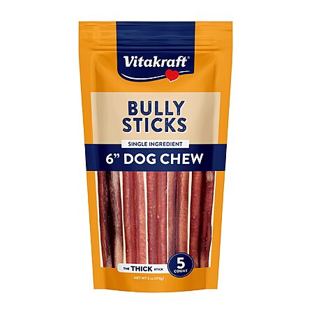Vitakraft Dog Bully Sticks, 6 Inch, 5 Count, Thick, All-Natural Beef Chews for Dogs, 6 oz $17.59