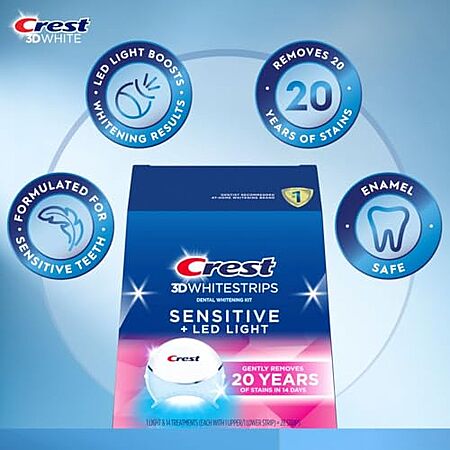 [S&S, AC] $22.49 | Crest 3D Whitestrips Sensitive & Gentle + LED Light – Teeth Whitening Kit (1 Light + 14 Treatments) at Amazon