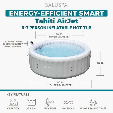 Model: SaluSpa Tahiti Energy-Efficient Smart AirJet Inflatable Circle Hot Tub with App Control 5-7 Person with Pump #P08374