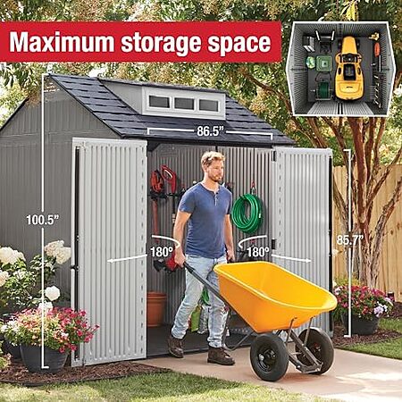 Model: Rubbermaid Resin Outdoor Storage Shed With Floor (7 x 7 Ft) Weather Resistant Gray Organization for Home/Backyard/Garden Tools/Lawn Mower/Bike Storage/Pool Supplies