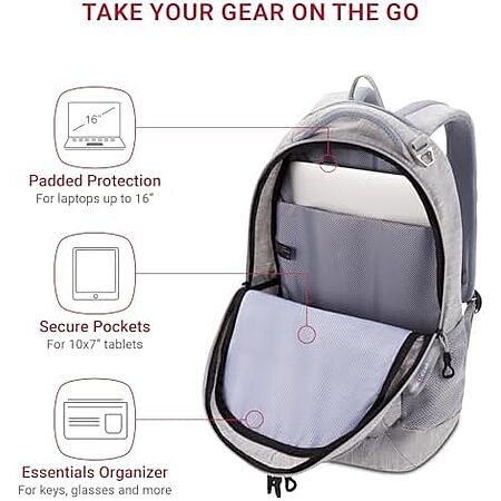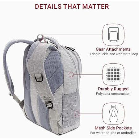 $34.19 | SwissGear 5505 Cecil 16” Laptop Backpack Light Grey at Amazon