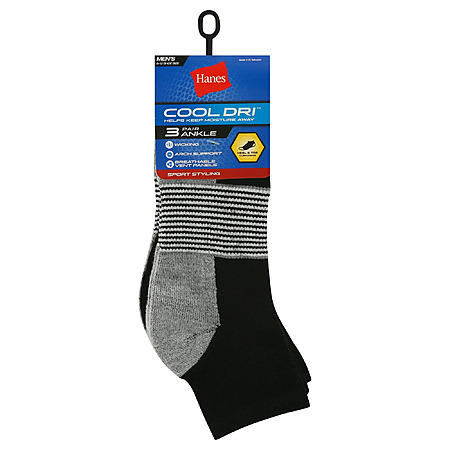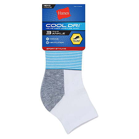 3-Pairs Hanes Cool DRI Men's Ankle Socks w/ Ventilation from $2.38 + Free S&H w/ Walmart+ or on $35+
