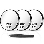 Haikopoon Magnifying Mirror 20X&30X&40X 3Packs with Tweezer and Suction Cups Set, - $4.99 3.5 Inches Compact Travel Magnified Mirror-Black