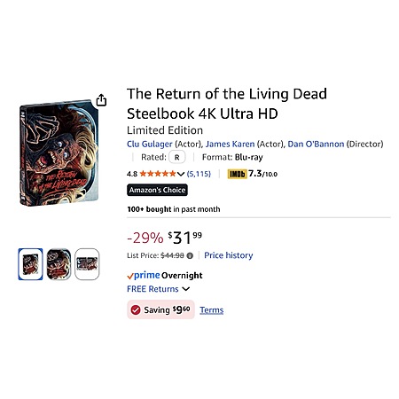 The Return of the Living Dead Steelbook 4K Ultra HD $22.39 with Coupon YMMV maybe region specific Amazon
