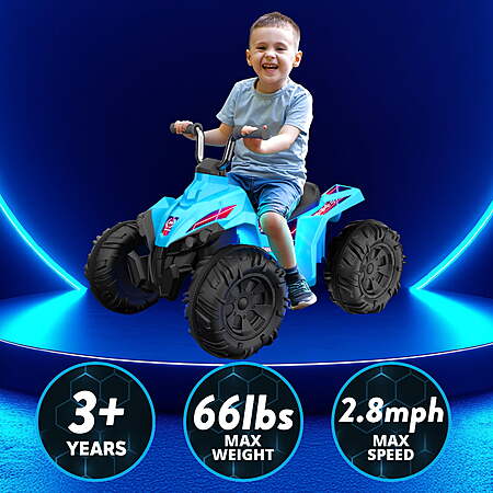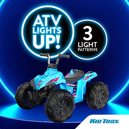 12V Kid Trax Glow ATV Ride-On Toy w/ LED Lights & Rechargeable Battery (Blue) for