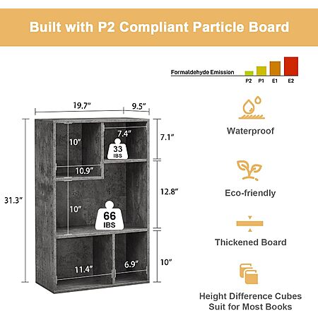 VECELO 5 Cube Shelf Contemporary Bookshelf (Modern Gray) $29.88