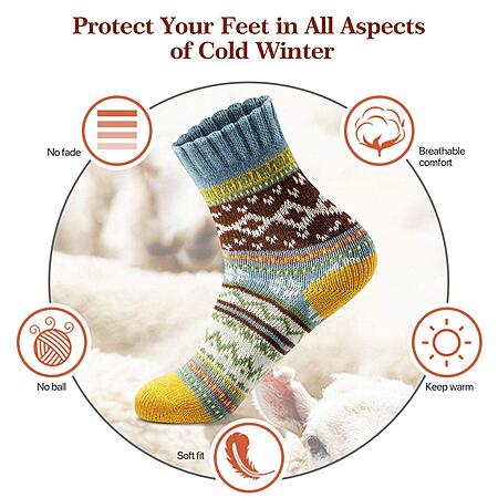 5 Pairs FYC Socks for Women - Stocking Stuffers Gifts for Women - Warm Thick Soft Wool Cozy Crew Socks Christmas Gifts for Woman $5.49