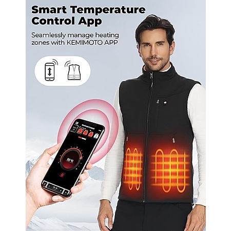 Kemimoto Men's Heated Smart Vest w/ App Control & 10000 mAh Battery $40 + Free Shipping