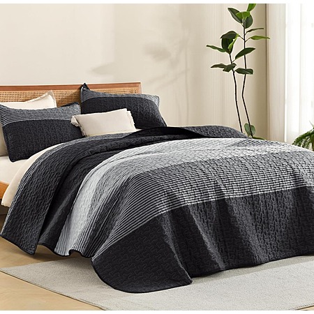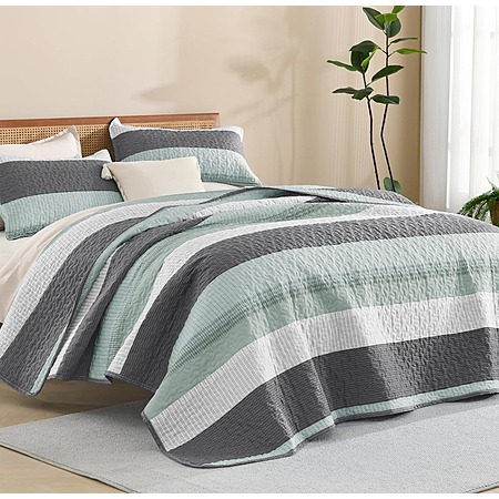 Litanika 3-Pc Lightweight Microfiber Stripe Patchwork Bedspread Quilt Set: King $28.98, Super King $39.10 + FS