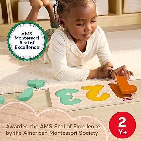 Model: Fisher-Price Wood Montessori Toy 1-2-3 Puzzle, American Montessori Society Seal of Excellence, 6-Piece Wooden Learning Activity & Expert Play Tips for Toddlers & Kids Ages 2+ Years (Amazon Exclusive)