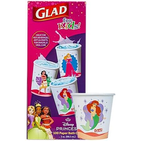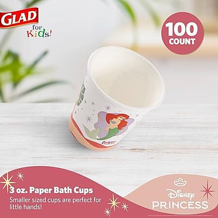 Amazon[amazon.com] has 100-Count Glad for Kids Disney Princess Disposable Mini Paper Cups for $4.98 - 5% when you check out via Subscribe & Save = $4.73. Shipping is free with Prime or on $35+ orders.