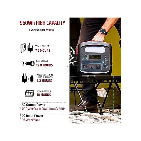 Woot! has Energizer IX60301G 960Wh MAX Portable Power Station, LiFePO4 (LFP), 110V/700W Pure Sine Wave AC Outlet, USB-C PD 100W, w/Case, LED, Outdoor, Home Emergency, Power Outage, RV, Camping, CPAP on sale for $239.99. Shipping is free w/ Prime. Otherwise shipping is $6.