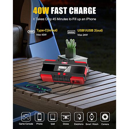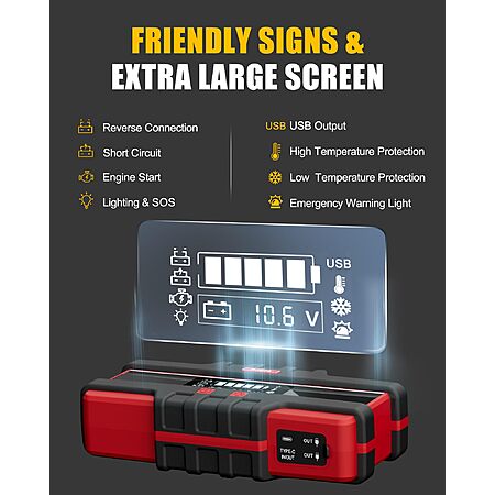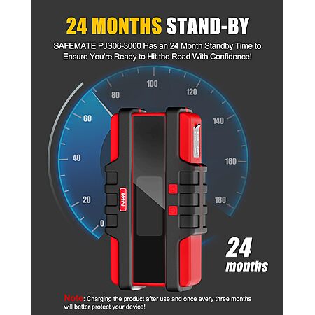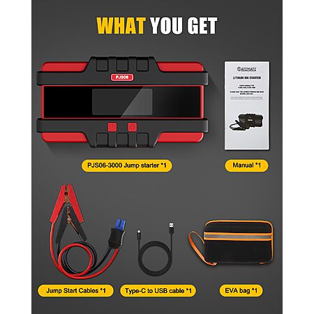 $20.37*:SAFEMATE PJS06 3000A Car Jump Starter – 12V Portable Battery Booster with Voltage Detection, Protection & LED Warning Light