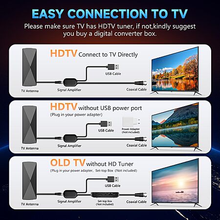 2026 TV Antenna, Digital TV Antenna Indoor with Signal Booster, Long Range Antenna for Smart TV and All Older TV's-Supports 4K 1080p -33ft Coaxial Cable $34.99