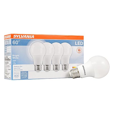 4 Pack LEDVANCE Sylvania LED Light Bulb, 60W Equivalent A19, Efficient 8.5W, Medium Base, 800 Lumens, Bright White (79704) $6.08 +FS w/Prime