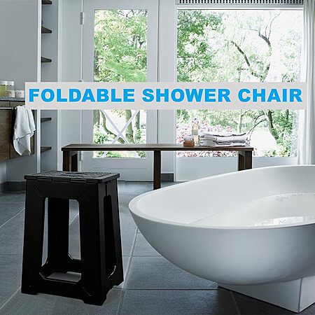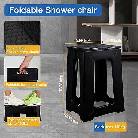 ProTraverse Foldable Small Waterproof Plastic Corner Stool for Bathroom, Holds Up to 330 lbs, 17.7 inches,Black $23.98