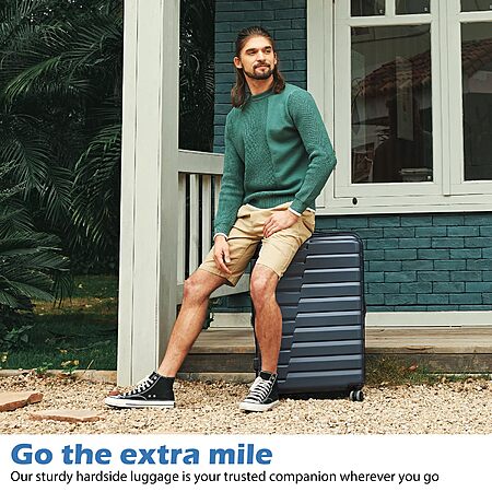 - ABS+PC material, durable and lighter hard shell, features textured finish to prevent against scratches. The beveled edge design on the upper part increases toughness for the luggage.