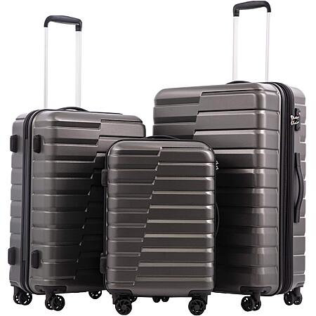 Coolife Luggage via Amazon.com has COOLIFE Expandable Suitcase PC ABS TSA Luggage 3 Piece Set Lock Spinner Carry on (gray/sliver/teal blue) on sale for $119.99.