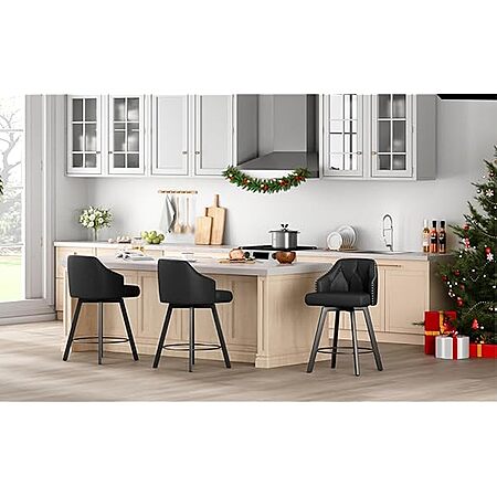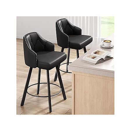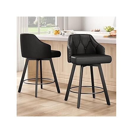 2-Count Tatub 26" Swivel Leather Bar Counter Height Stools w/ Tufted Back & Metal Legs (Black, Button Tufted & Rivet) $94.99 + Free Shipping w/ Prime