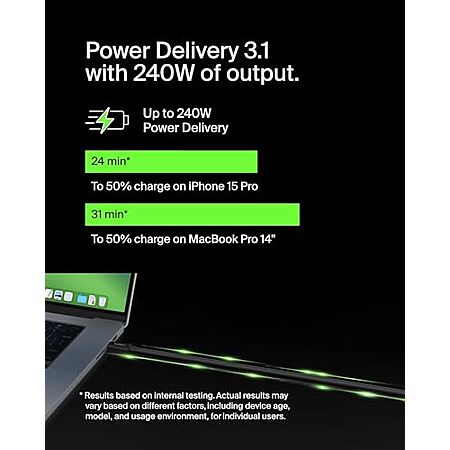 Model: Belkin Connect USB4 Cable (4ft/1.2M Power Cable), USB-C to USB-C Cable w/ 240W Power Delivery + 20Gbps - USB4 Compliant Power Cable, Compatible with MacBook, Windows, Chromebook, & More