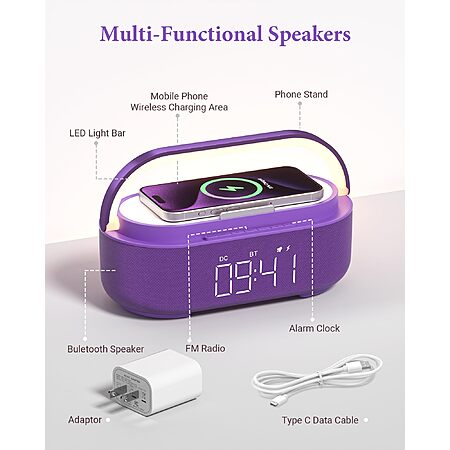 [Prime] 6-in-1 COLSUR Bluetooth Speaker Alarm Clock w/ Wireless Charger $15.33 + Free Shipping