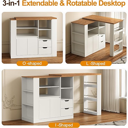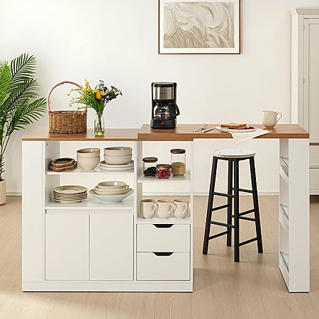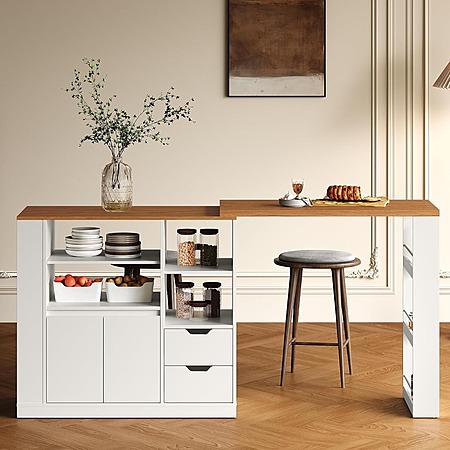 75.8'' RoyalCraft Kitchen Island w/ Extending Rotatable Countertop & Storage (White) $140.05 + Free Shipping