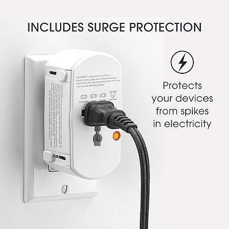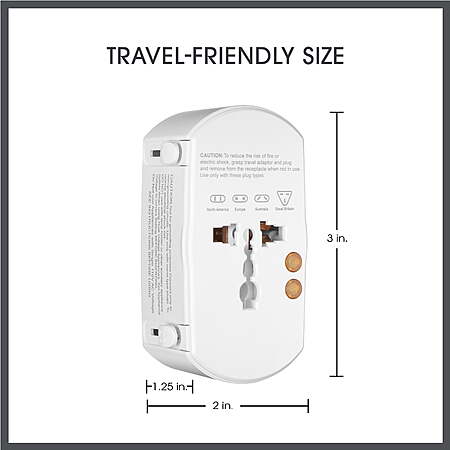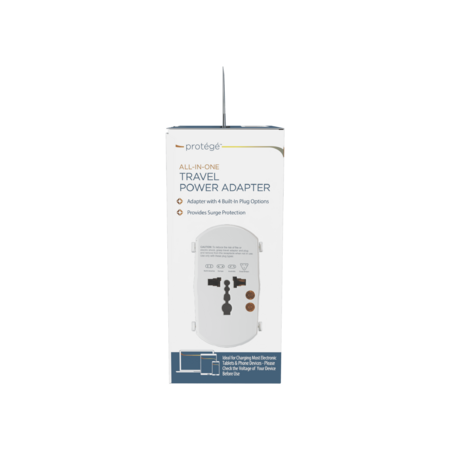 | Product Description: | The Protege All-In-One Travel Power Adapter allows you to travel with confidence and charge your devices no matter where you are in the world. It includes two power indicators, safety shutters to protect its circuitry when not in use, multiple AC adapters for global versatility, and provides appliance-saving surge protection. The adapter accepts grounded, non-grounded, polarized and non-polarized plugs many countries. Use this all-in-one adapter for wall outlets to plug in your dual voltage appliances and devices when you are traveling domestically or overseas. Stay connected while you travel with confidence when you take the Protege All-In-One Travel Power Adapter with you on your travels. Protege All-In-One Travel Power Adapter Built-in surge protection safeguards appliances from spikes in electricity Compatible with dual voltage appliances such as cell phones, cameras, laptops, and tablets Adapter has multiple plug options including Type C, Type A, Type I and Type G Power rating: 100-120V / 220-240V 10A Includes adapters for Europe, Middle East, North and South America, Japan, Caribbean Countries, Australia, New Zealand, China, Fiji, UK, Ireland, Africa, Hong Kong, Singapore and some African, Asian, and Caribbean Countries |