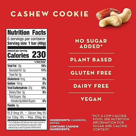 6-Count 1.7-Ounce Larabar Gluten Free/Vegan Fruit & Nut Bars (Cashew Cookie) $3.35 w/ S&S + Free Shipping w/ Prime or on $35+