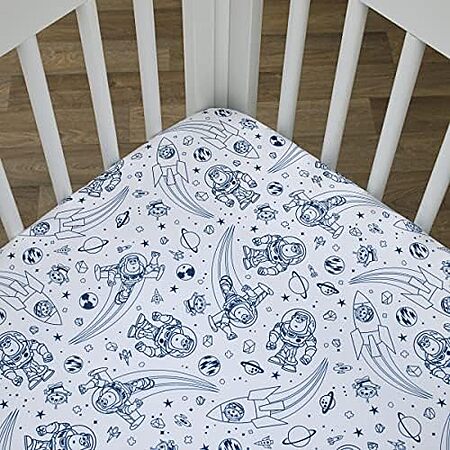 $4 | Disney Toy Story Outta This World Blue and White Fitted Crib Sheet at Amazon