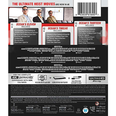 Ocean's Trilogy 4K UHD Blu-Ray Collection $30