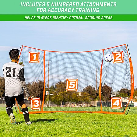- 5 SCORING TARGETS: Includes numbered squares to attach to any area on the net to signify target zones; Allows coaches to easily instruct players where to shoot