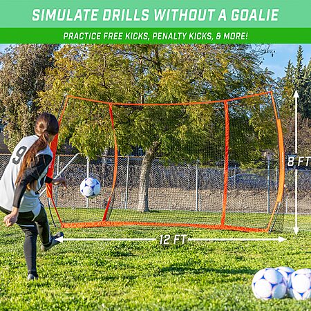 Amazon.com has GoSports Strike Net 12 ft x 8 ft Soccer Training Goal - Practice Net for All Skill Levels on sale for $75.08. Shipping is Free.