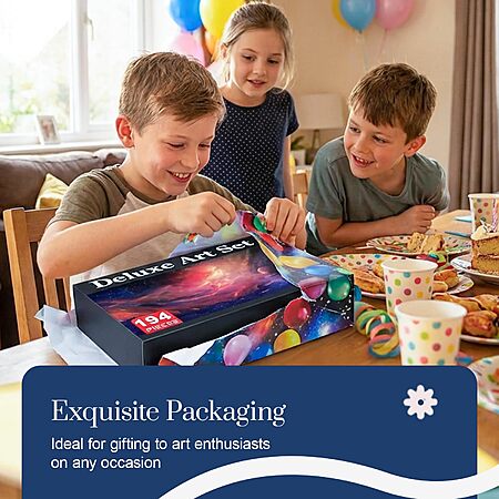 Model: 194 Piece Deluxe Art Set, Painting Drawing Art Supplies with 4 Drawing Pads, Acrylic Paints, Crayons, Colored Pencils Set in Wooden Case, Art Kit Gift Box for Kids, Teens, Adults, Artists, Beginners