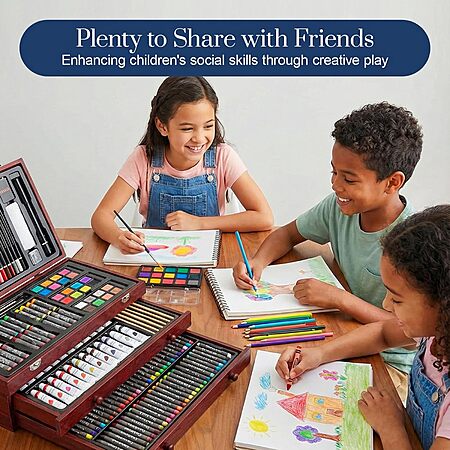$26.74*:194-Piece Deluxe Art Set – Painting & Drawing Supplies with Acrylics, Crayons, Colored Pencils, 4 Pads, Wooden Case @ Amazon