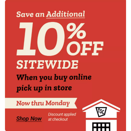 Tractor Supply Company - Save an Additional 10% off sitewite when you buy online and pick up in store, 1/17 thru 1/19